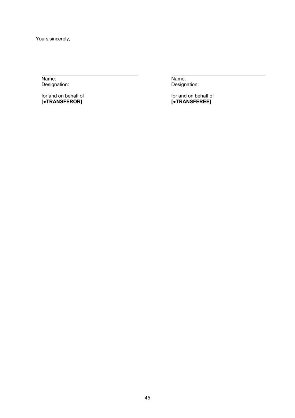 45 Yours sincerely, Name: Designation: for and on behalf of [●TRANSFEROR] Name: Designation: for and on behalf of [●TRANSFEREE]