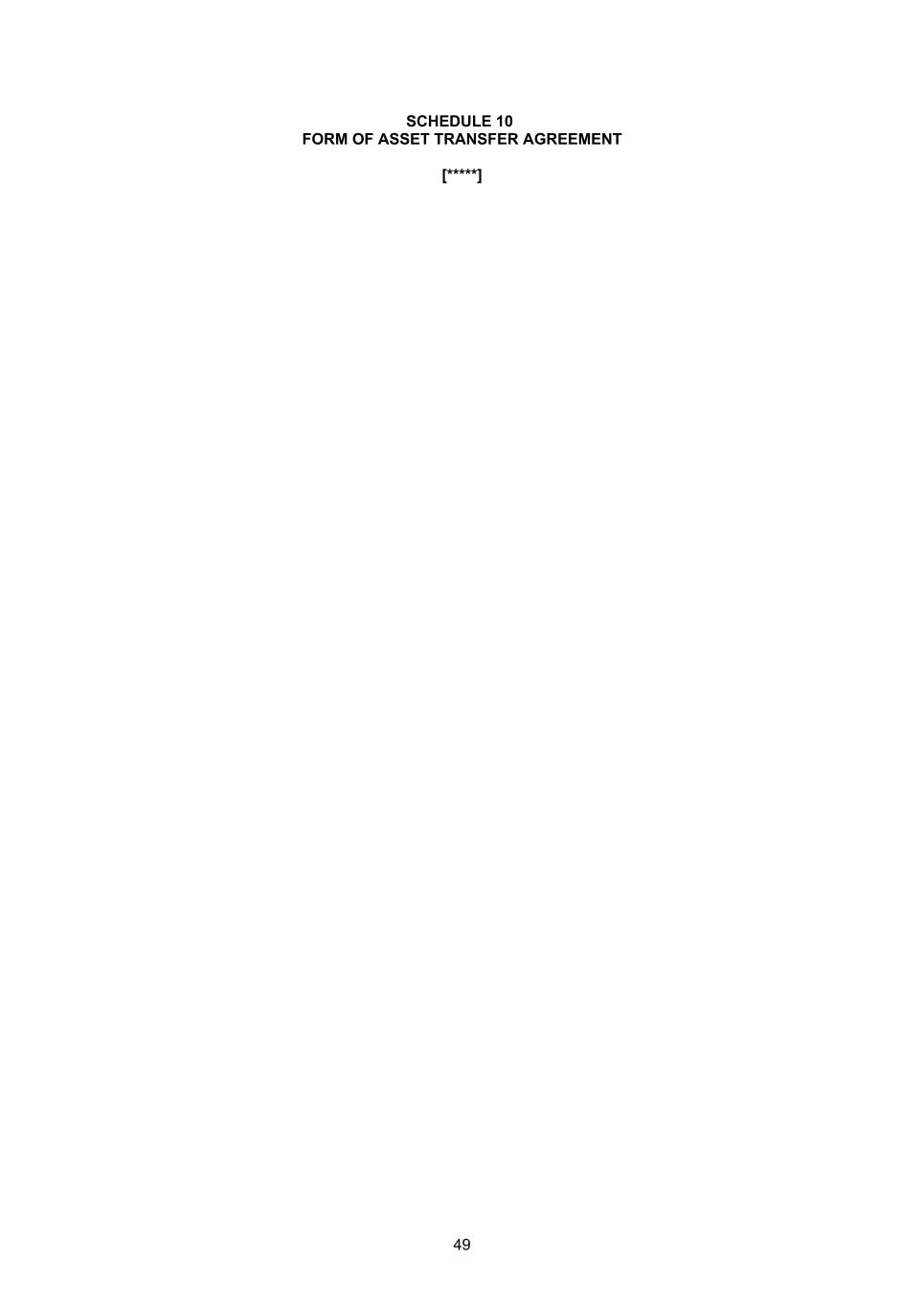 49 SCHEDULE 10 FORM OF ASSET TRANSFER AGREEMENT [*****]