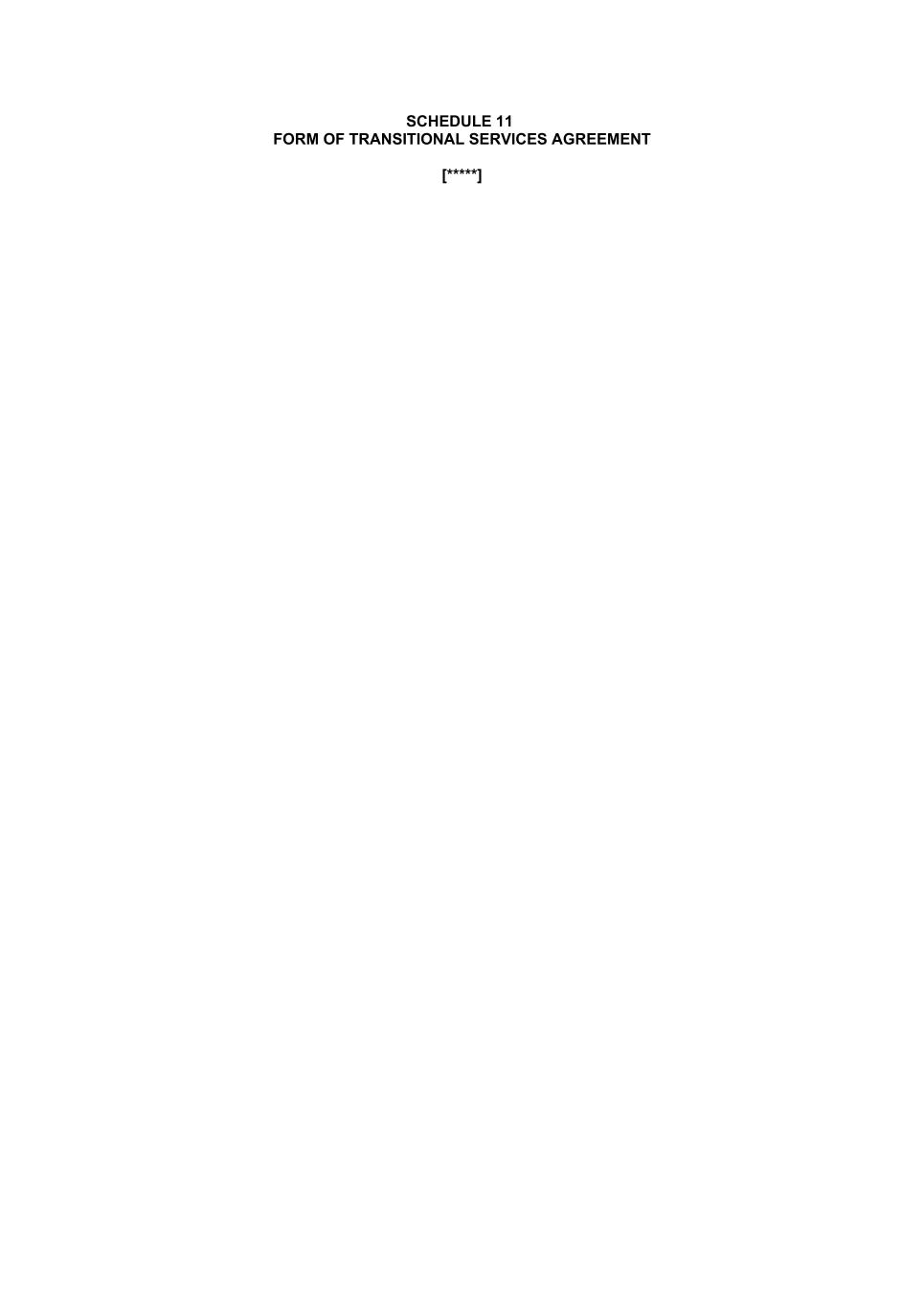 SCHEDULE 11 FORM OF TRANSITIONAL SERVICES AGREEMENT [*****]