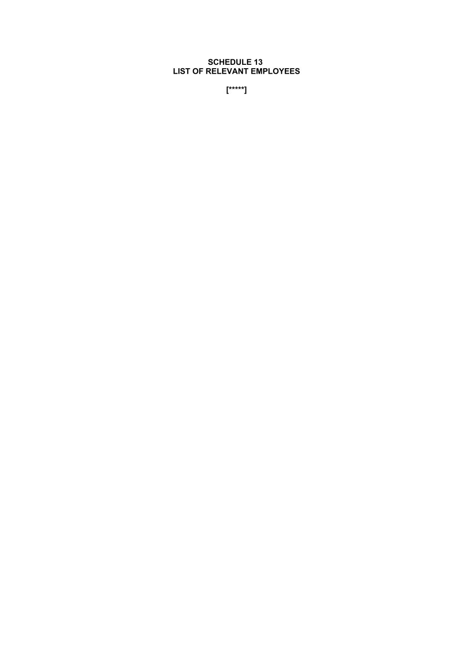 SCHEDULE 13 LIST OF RELEVANT EMPLOYEES [*****]