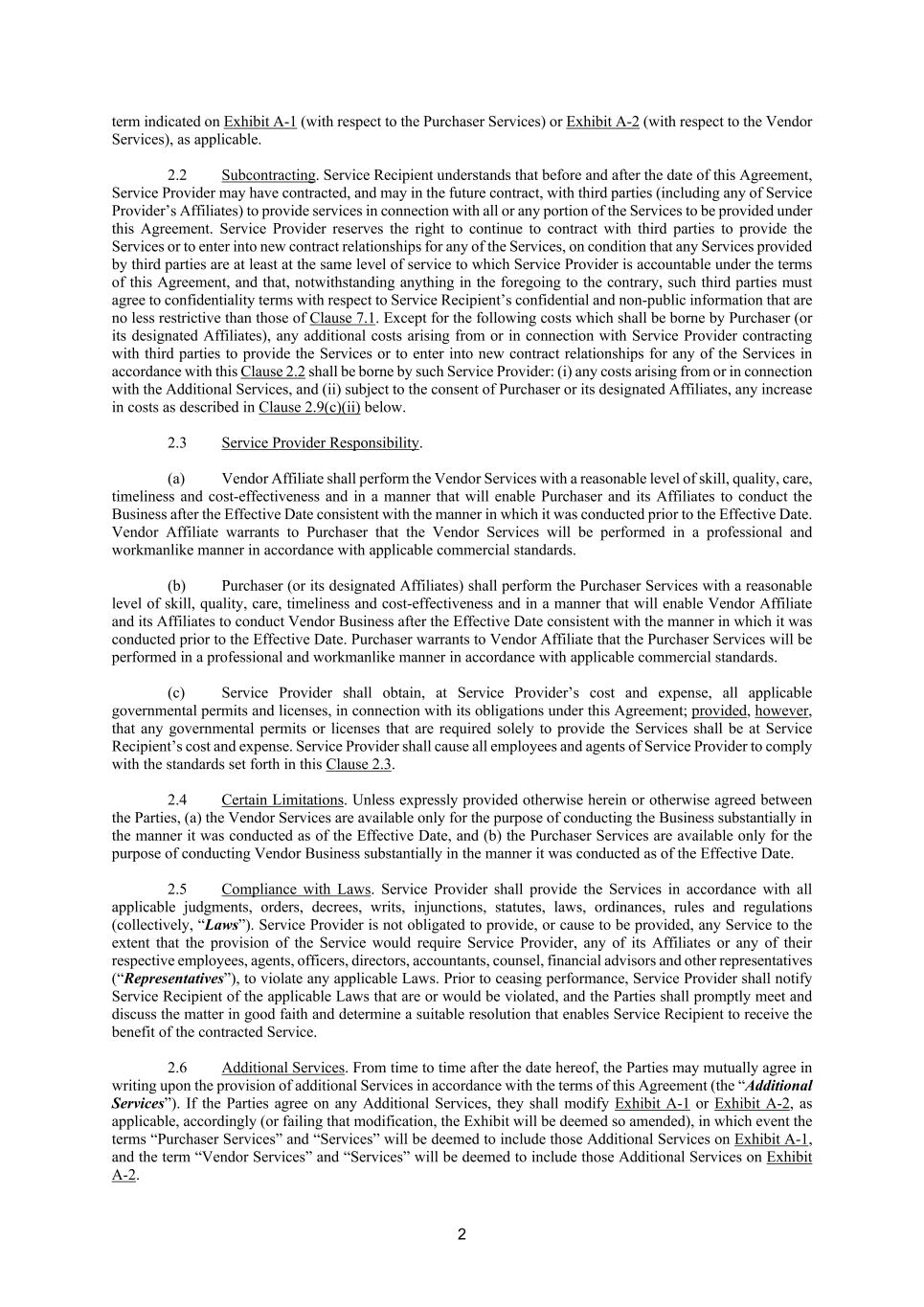EXHIBIT A-2 VENDOR SERVICES The aggregate amount for Vendor Services set out in in this Exhibit A-2 as of the date of this Agreement is estimated to be $ . Notwithstanding such estimated aggregate amount, amounts payable to Vendor Affiliate as Service Provider for the Vendor Services shall be invoiced and payable in accordance with Clause 5.2 of this Agreement. [*****]