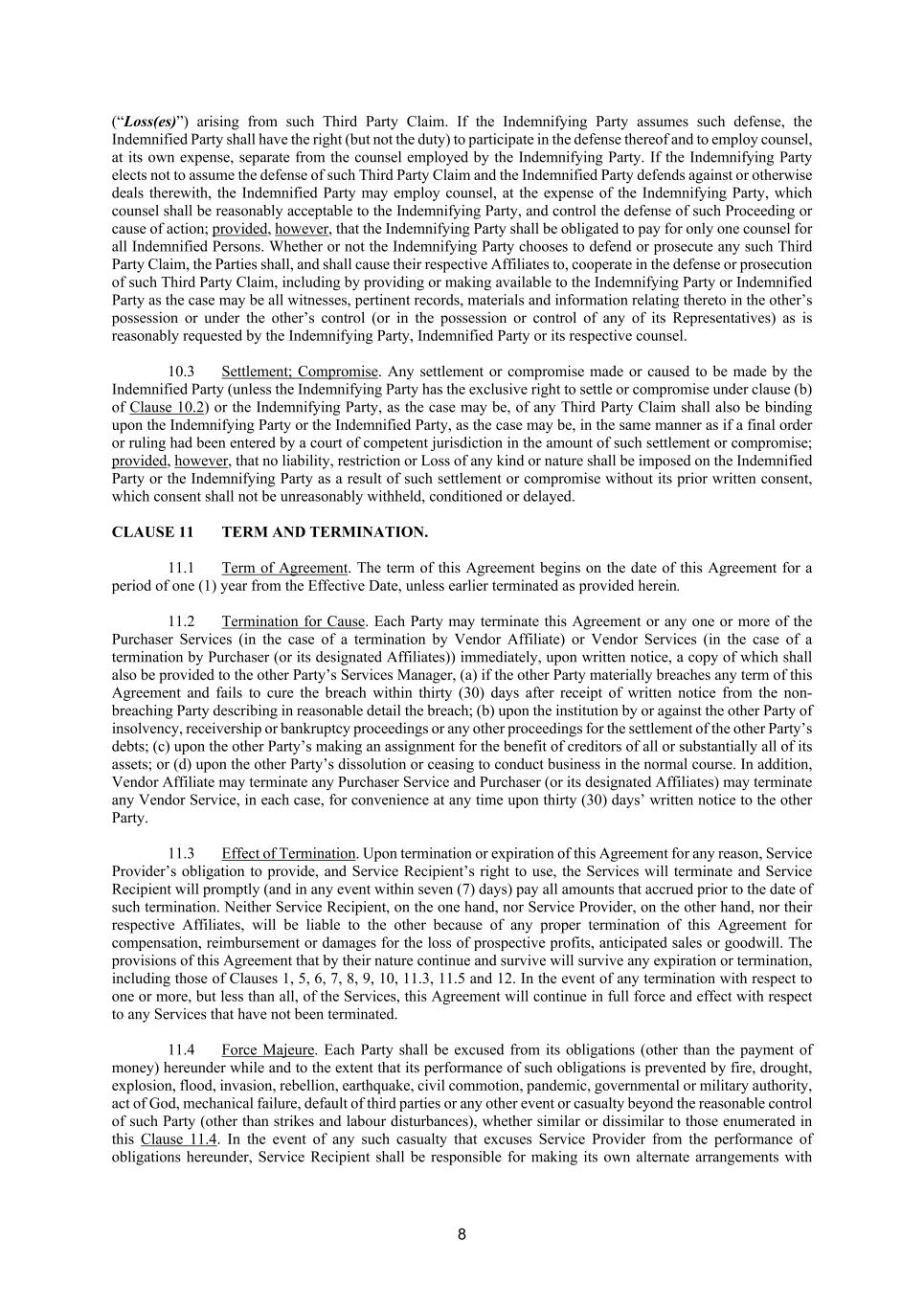 SCHEDULE 8 LIMITATION OF THE VENDOR'S LIABILITIES [*****]