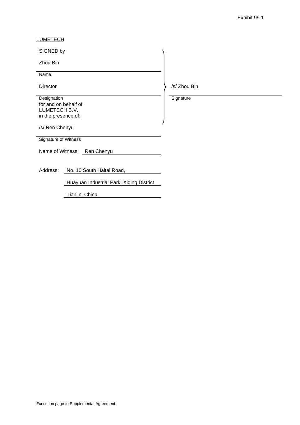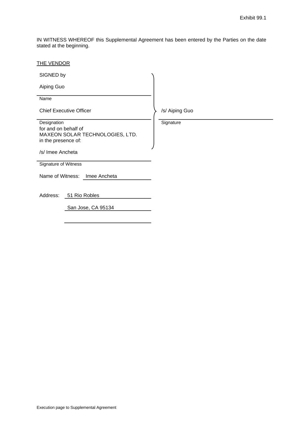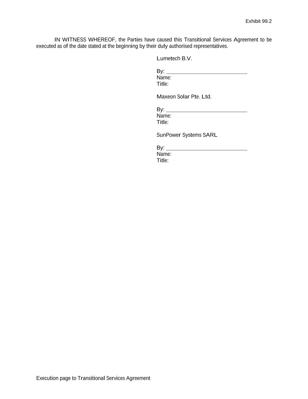 Exhibit 99.2 Execution page to Transitional Services Agreement IN WITNESS WHEREOF, the Parties have caused this Transitional Services Agreement to be executed as of the date stated at the beginning by their duly authorised representatives. Lumetech B.V. By: Name: Title: Maxeon Solar Pte. Ltd. By: Name: Title: SunPower Systems SARL By: Name: Title: