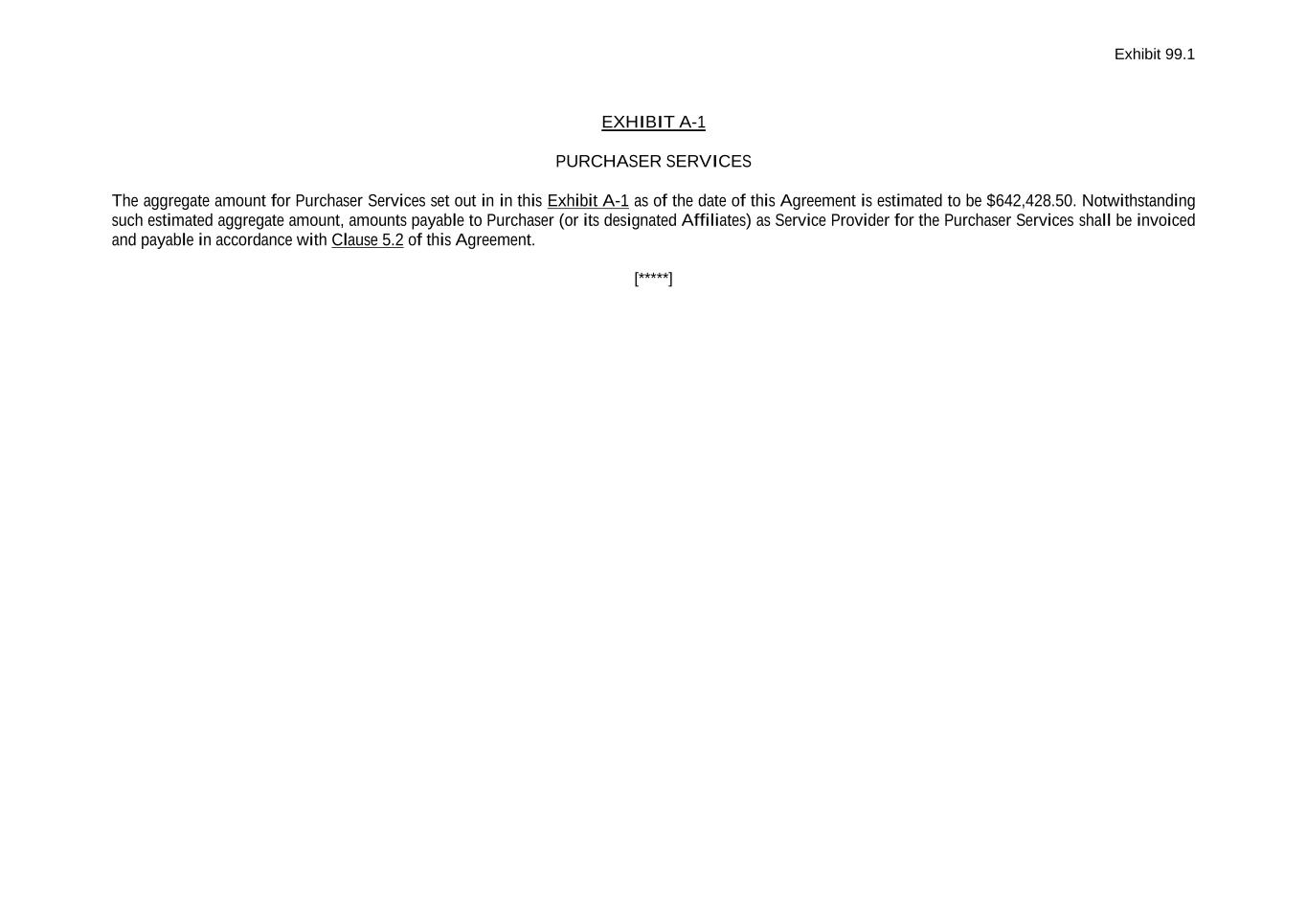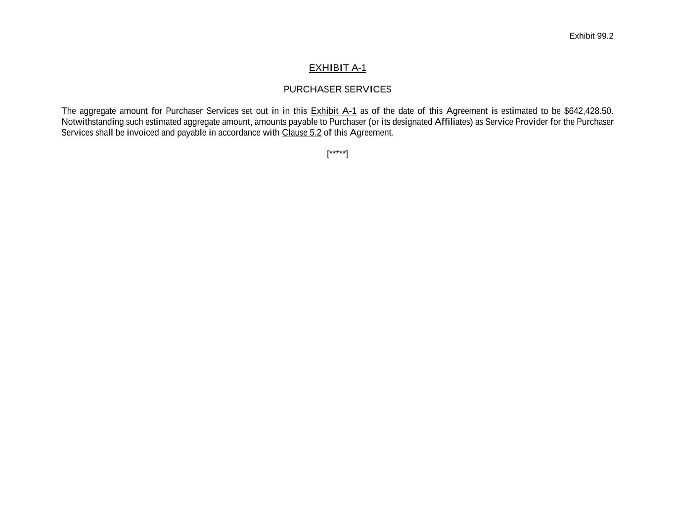 Exhibit 99.2 EXHIBIT A-1 PURCHASER SERVICES The aggregate amount for Purchaser Services set out in in this Exhibit A-1 as of the date of this Agreement is estimated to be $642,428.50. Notwithstanding such estimated aggregate amount, amounts payable to Purchaser (or its designated Affiliates) as Service Provider for the Purchaser Services shall be invoiced and payable in accordance with Clause 5.2 of this Agreement. [*****]